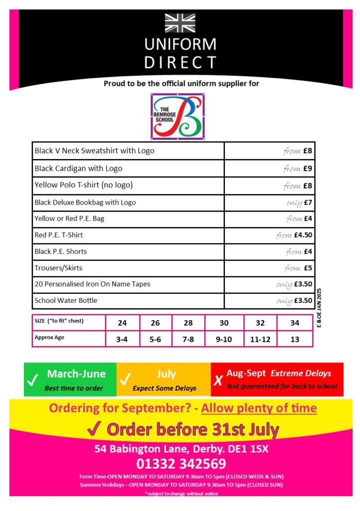 The Bemrose School – Primary Phase Uniform