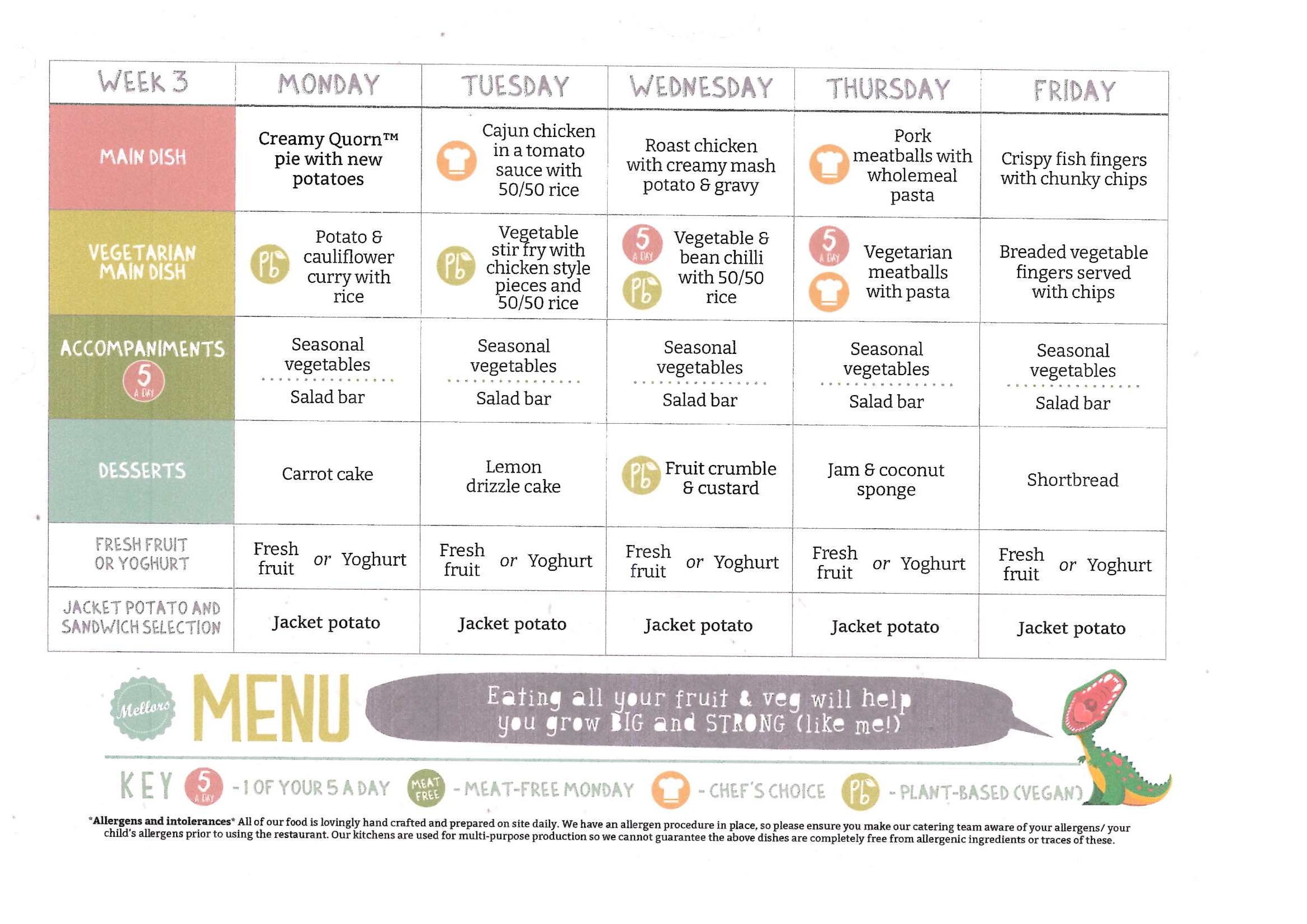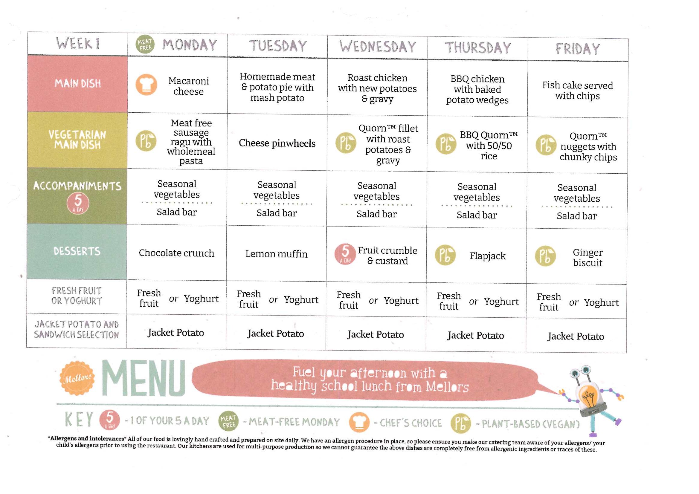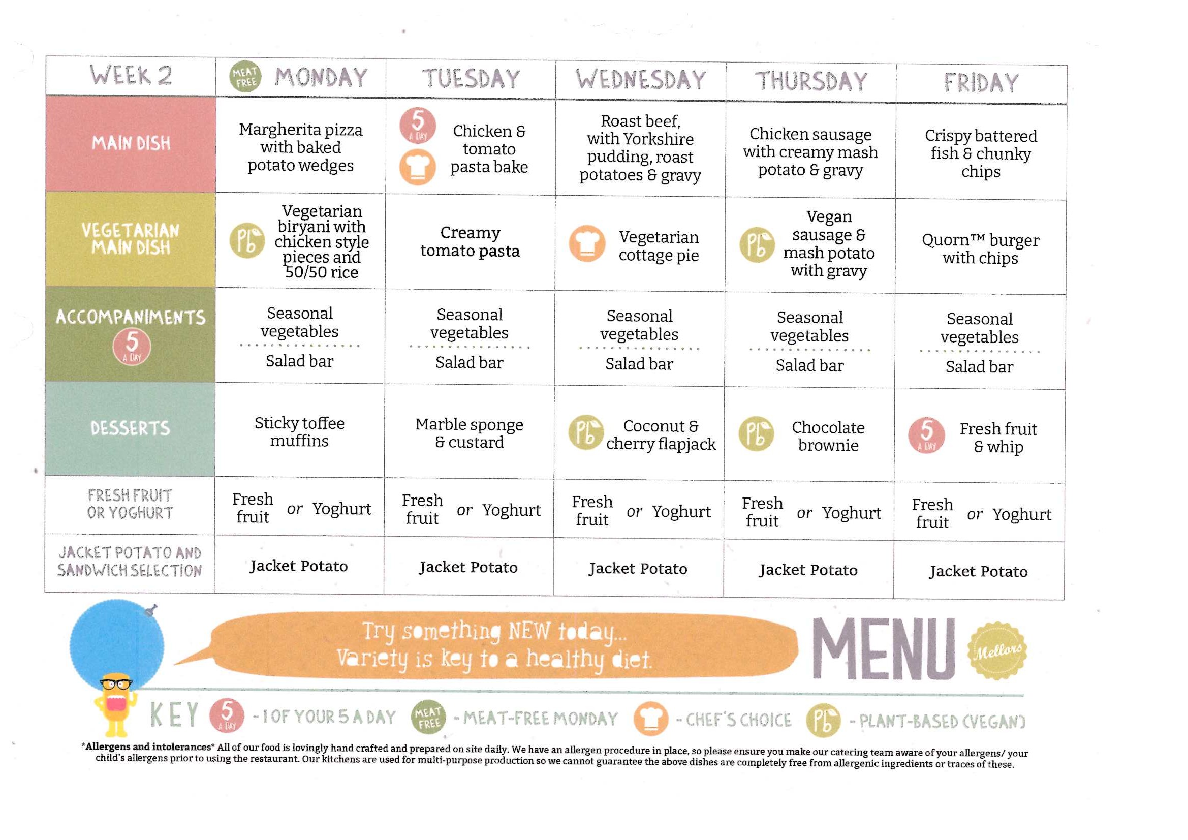 There is a school dinner option available for the Primary Phase, adapted from the Secondary Catering Facilities, for your child/ren, should you require them to have a school dinner. Each week the menu changes and copies are available from Primary Reception along with being posted on class dojo and listed below. School dinners are £2.52 a day. If you require a change from school lunches or sandwiches then we ask that you give the catering staff 2 weeks’ notice before the change can happen.